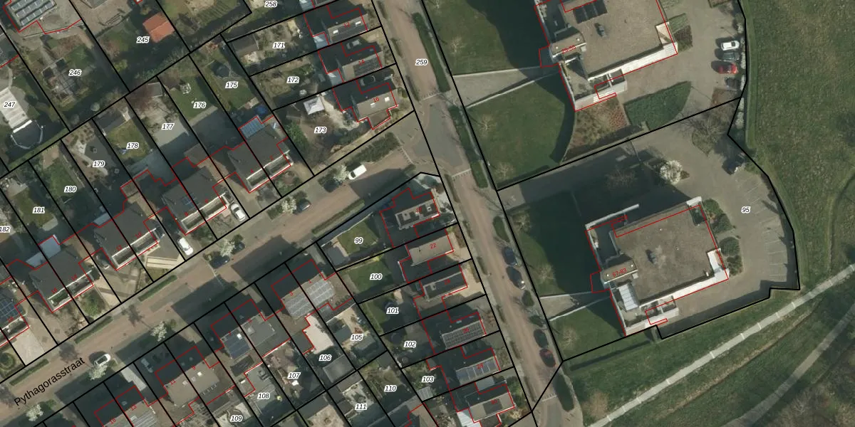 Gebruik de zoekbalk of klik op een perceel voor informatie over de adressen binnen dit perceel.