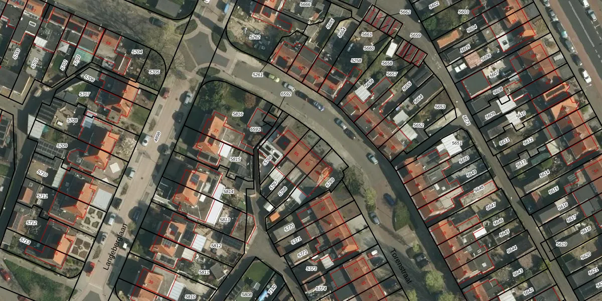 Het perceel waarop Torenstraat 65 staat heeft een oppervlakte van 126 m². Dit is een middelgroot perceel. De perceeloppervlakte wordt geregistreerd door het Kadaster. Gedetailleerde informatie over de maten van dit perceel kunt u vinden in het rapport Kadastrale kaart met maatvoering van Torenstraat 65.