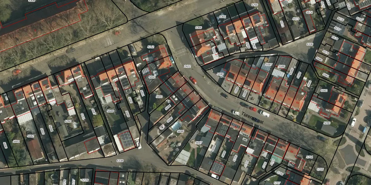 Het perceel waarop Torenstraat 89 staat heeft een oppervlakte van 180 m². Dit is een middelgroot perceel. De perceeloppervlakte wordt geregistreerd door het Kadaster. Gedetailleerde informatie over de maten van dit perceel kunt u vinden in het rapport Kadastrale kaart met maatvoering van Torenstraat 89.