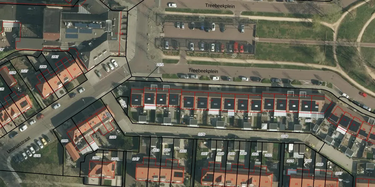 Het perceel waarop Treebeekplein 10 staat heeft een oppervlakte van 4253 m². Dit is een zeer groot perceel. De perceeloppervlakte wordt geregistreerd door het Kadaster. Gedetailleerde informatie over de maten van dit perceel kunt u vinden in het rapport Kadastrale kaart met maatvoering van Treebeekplein 10.