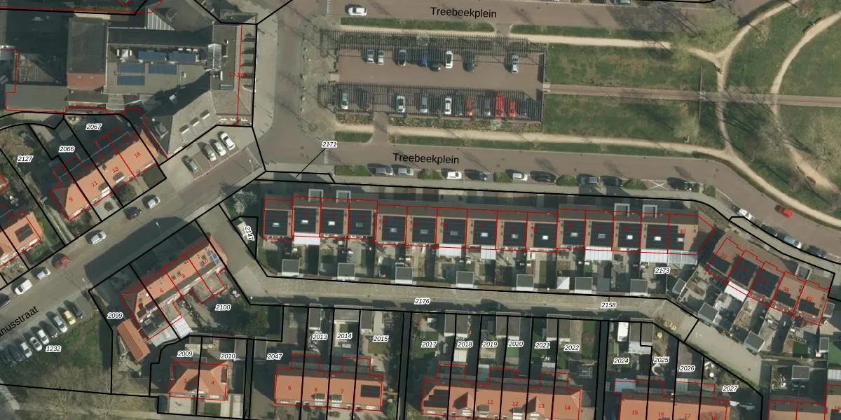 Het perceel waarop Treebeekplein 12 staat heeft een oppervlakte van 4253 m². Dit is een zeer groot perceel. De perceeloppervlakte wordt geregistreerd door het Kadaster. Gedetailleerde informatie over de maten van dit perceel kunt u vinden in het rapport Kadastrale kaart met maatvoering van Treebeekplein 12.