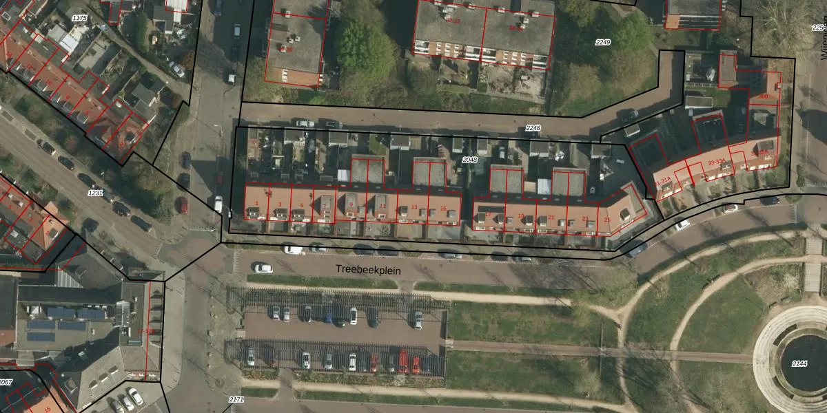 Het perceel waarop Treebeekplein 13 staat heeft een oppervlakte van 2564 m². Dit is een zeer groot perceel. De perceeloppervlakte wordt geregistreerd door het Kadaster. Gedetailleerde informatie over de maten van dit perceel kunt u vinden in het rapport Kadastrale kaart met maatvoering van Treebeekplein 13.