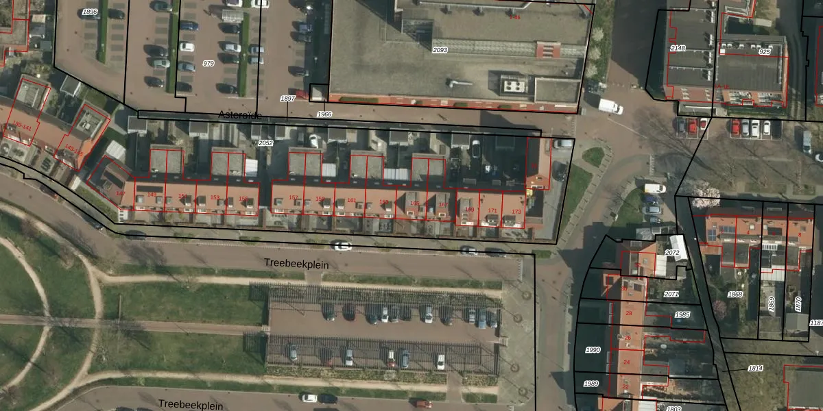 Het perceel waarop Treebeekplein 165 staat heeft een oppervlakte van 4436 m². Dit is een zeer groot perceel. De perceeloppervlakte wordt geregistreerd door het Kadaster. Gedetailleerde informatie over de maten van dit perceel kunt u vinden in het rapport Kadastrale kaart met maatvoering van Treebeekplein 165.