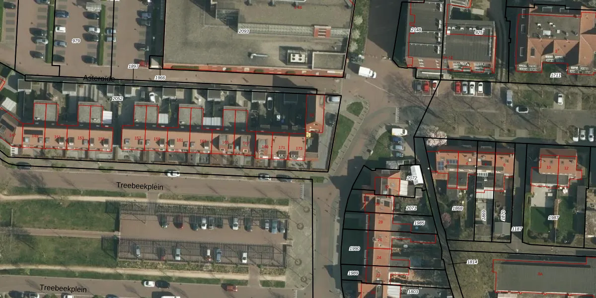 Het perceel waarop Treebeekplein 173 staat heeft een oppervlakte van 4436 m². Dit is een zeer groot perceel. De perceeloppervlakte wordt geregistreerd door het Kadaster. Gedetailleerde informatie over de maten van dit perceel kunt u vinden in het rapport Kadastrale kaart met maatvoering van Treebeekplein 173.