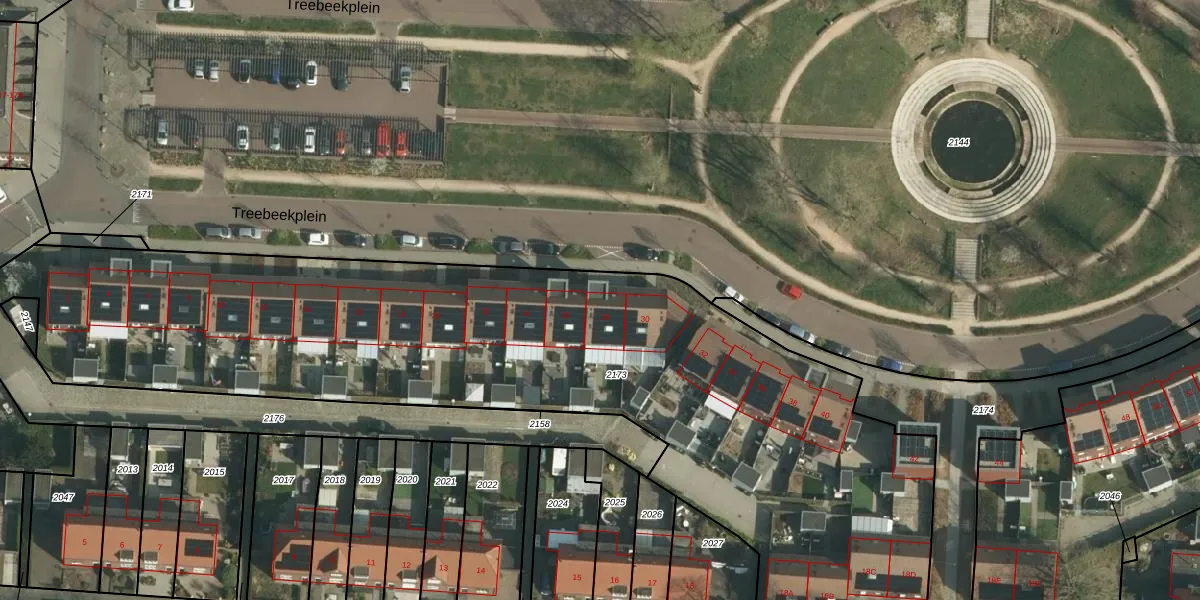 Het perceel waarop Treebeekplein 28 staat heeft een oppervlakte van 4253 m². Dit is een zeer groot perceel. De perceeloppervlakte wordt geregistreerd door het Kadaster. Gedetailleerde informatie over de maten van dit perceel kunt u vinden in het rapport Kadastrale kaart met maatvoering van Treebeekplein 28.