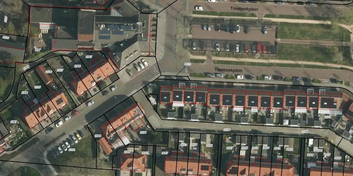 Het perceel waarop Treebeekplein 4 staat heeft een oppervlakte van 4253 m². Dit is een zeer groot perceel. De perceeloppervlakte wordt geregistreerd door het Kadaster. Gedetailleerde informatie over de maten van dit perceel kunt u vinden in het rapport Kadastrale kaart met maatvoering van Treebeekplein 4.