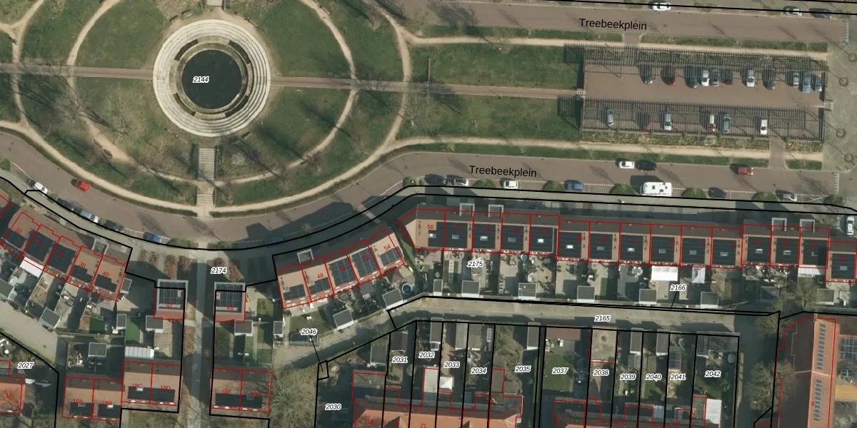Het perceel waarop Treebeekplein 56 staat heeft een oppervlakte van 4007 m². Dit is een zeer groot perceel. De perceeloppervlakte wordt geregistreerd door het Kadaster. Gedetailleerde informatie over de maten van dit perceel kunt u vinden in het rapport Kadastrale kaart met maatvoering van Treebeekplein 56.