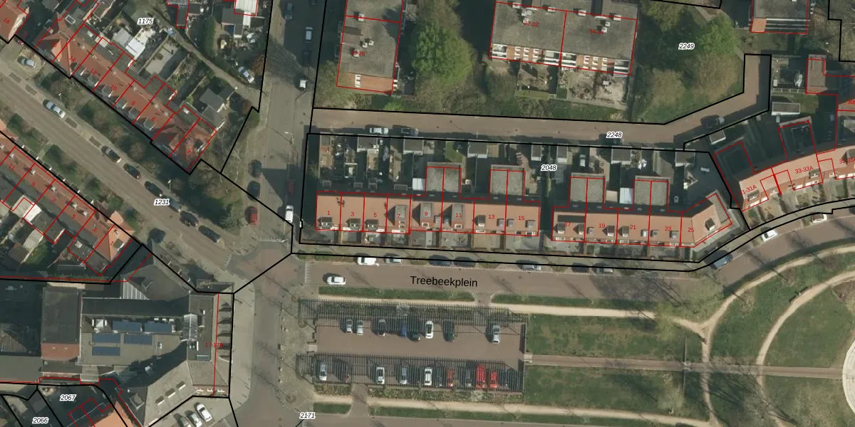 Het perceel waarop Treebeekplein 9 staat heeft een oppervlakte van 2564 m². Dit is een zeer groot perceel. De perceeloppervlakte wordt geregistreerd door het Kadaster. Gedetailleerde informatie over de maten van dit perceel kunt u vinden in het rapport Kadastrale kaart met maatvoering van Treebeekplein 9.