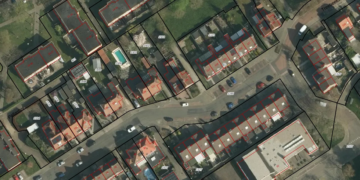 Gebruik de zoekbalk of klik op een perceel voor informatie over de adressen binnen dit perceel.