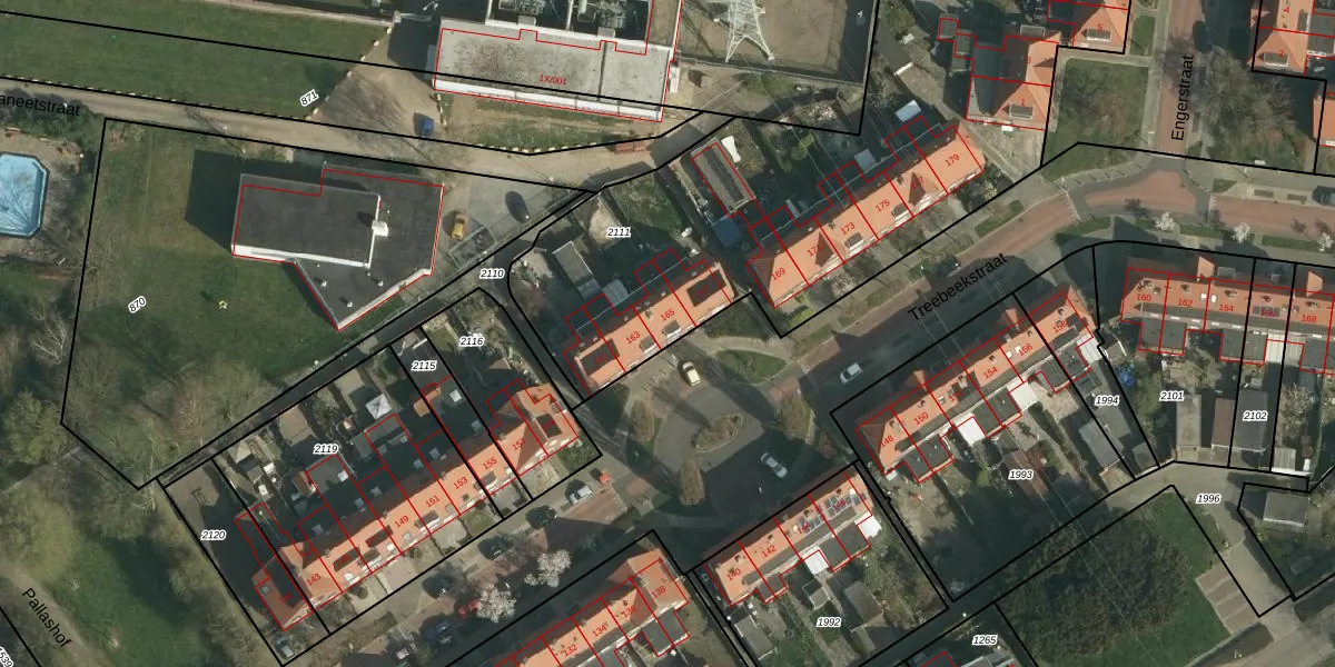 Het perceel waarop Treebeekstraat 165 staat heeft een oppervlakte van 2775 m². Dit is een zeer groot perceel. De perceeloppervlakte wordt geregistreerd door het Kadaster. Gedetailleerde informatie over de maten van dit perceel kunt u vinden in het rapport Kadastrale kaart met maatvoering van Treebeekstraat 165.