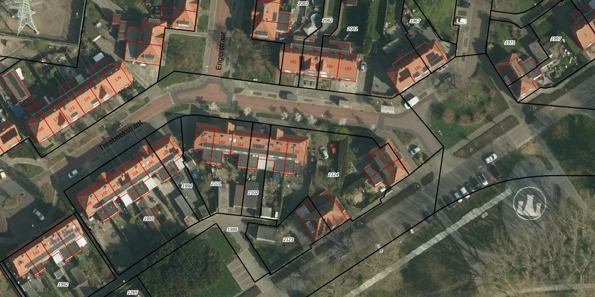 Het perceel waarop Treebeekstraat 170 staat heeft een oppervlakte van 1189 m². Dit is een zeer groot perceel. De perceeloppervlakte wordt geregistreerd door het Kadaster. Gedetailleerde informatie over de maten van dit perceel kunt u vinden in het rapport Kadastrale kaart met maatvoering van Treebeekstraat 170.