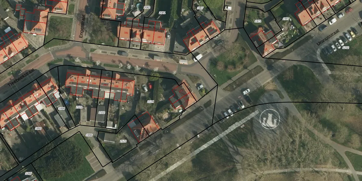 Het perceel waarop Treebeekstraat 172 staat heeft een oppervlakte van 1189 m². Dit is een zeer groot perceel. De perceeloppervlakte wordt geregistreerd door het Kadaster. Gedetailleerde informatie over de maten van dit perceel kunt u vinden in het rapport Kadastrale kaart met maatvoering van Treebeekstraat 172.