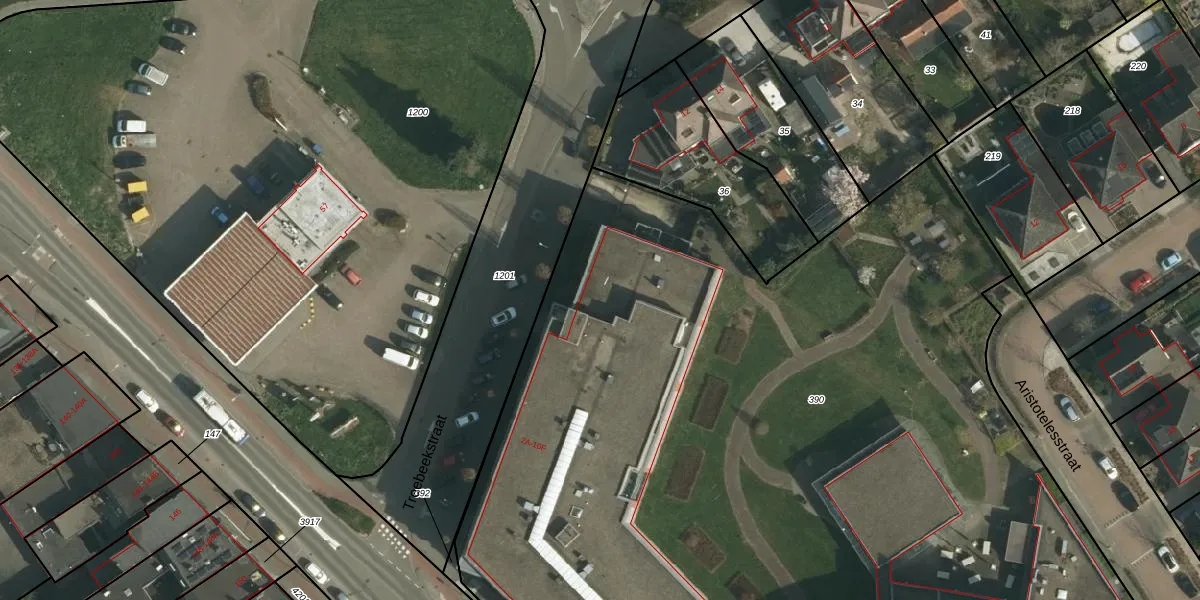 Het perceel waarop Treebeekstraat 8-A staat heeft een oppervlakte van 9544 m². Dit is een zeer groot perceel. De perceeloppervlakte wordt geregistreerd door het Kadaster. Gedetailleerde informatie over de maten van dit perceel kunt u vinden in het rapport Kadastrale kaart met maatvoering van Treebeekstraat 8-A.