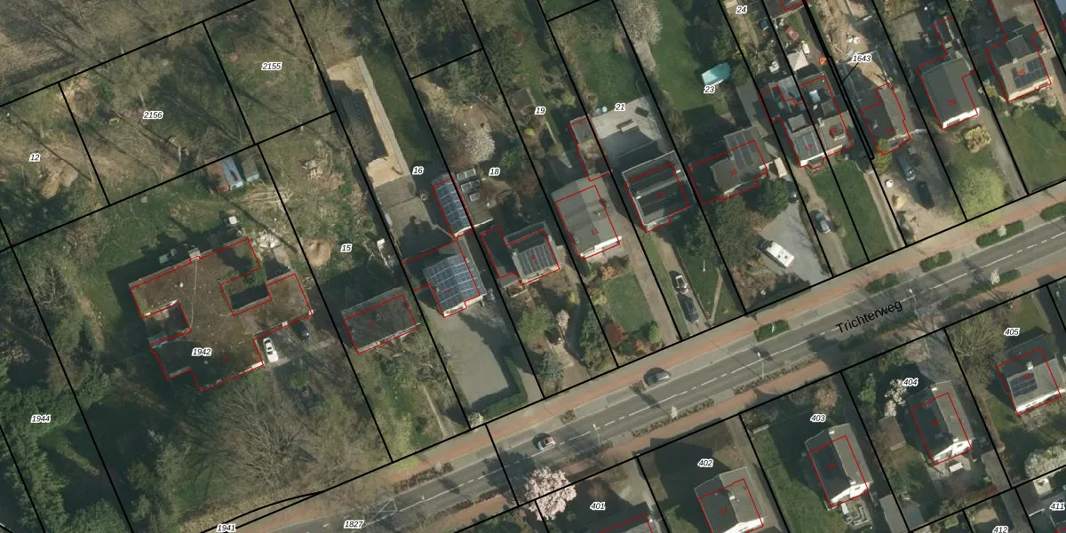 Het perceel waarop Trichterweg 9 staat heeft een oppervlakte van 975 m². Dit is een groot perceel. De perceeloppervlakte wordt geregistreerd door het Kadaster. Gedetailleerde informatie over de maten van dit perceel kunt u vinden in het rapport Kadastrale kaart met maatvoering van Trichterweg 9.