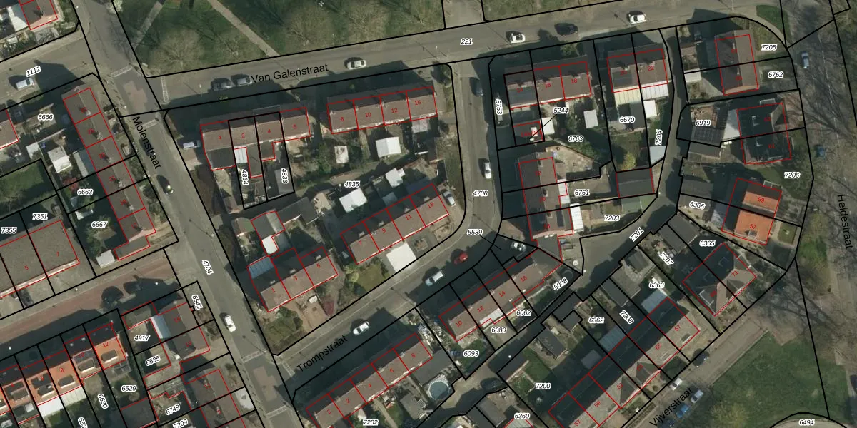 Het perceel waarop Trompstraat 13 staat heeft een oppervlakte van 2782 m². Dit is een zeer groot perceel. De perceeloppervlakte wordt geregistreerd door het Kadaster. Gedetailleerde informatie over de maten van dit perceel kunt u vinden in het rapport Kadastrale kaart met maatvoering van Trompstraat 13.