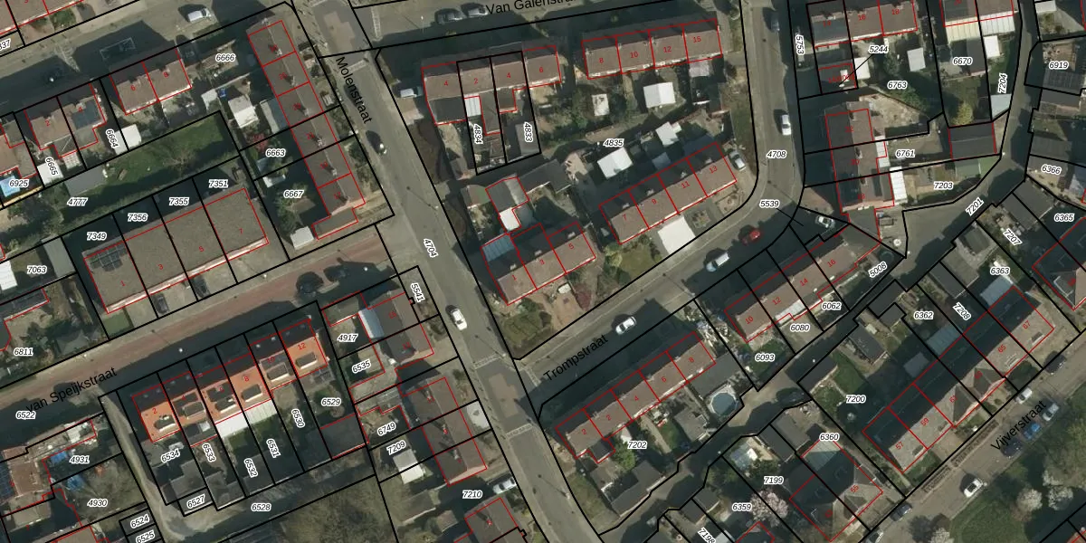 Het perceel waarop Trompstraat 3 staat heeft een oppervlakte van 2782 m². Dit is een zeer groot perceel. De perceeloppervlakte wordt geregistreerd door het Kadaster. Gedetailleerde informatie over de maten van dit perceel kunt u vinden in het rapport Kadastrale kaart met maatvoering van Trompstraat 3.