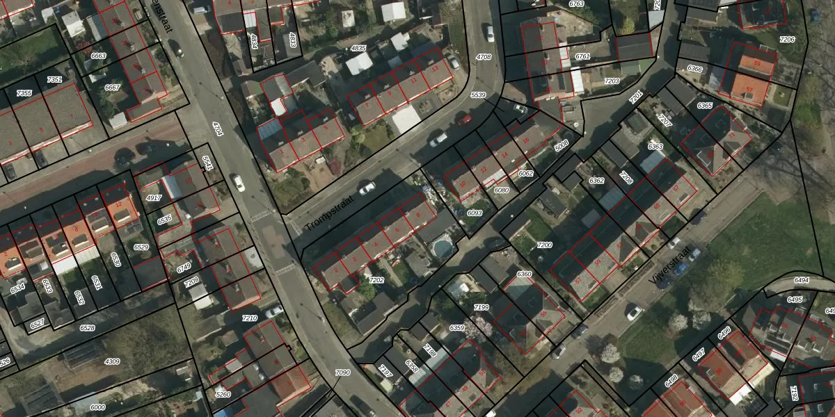 Het perceel waarop Trompstraat 8 staat heeft een oppervlakte van 897 m². Dit is een groot perceel. De perceeloppervlakte wordt geregistreerd door het Kadaster. Gedetailleerde informatie over de maten van dit perceel kunt u vinden in het rapport Kadastrale kaart met maatvoering van Trompstraat 8.