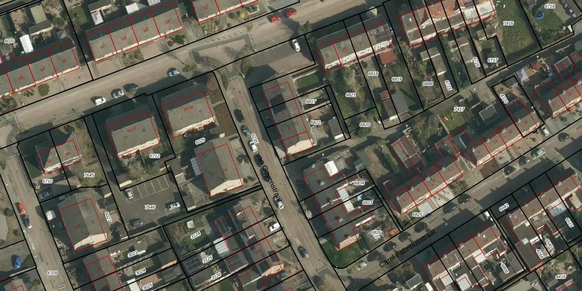Het perceel waarop van Goyenstraat 7 staat heeft een oppervlakte van 330 m². Dit is een groot perceel. De perceeloppervlakte wordt geregistreerd door het Kadaster. Gedetailleerde informatie over de maten van dit perceel kunt u vinden in het rapport Kadastrale kaart met maatvoering van van Goyenstraat 7.