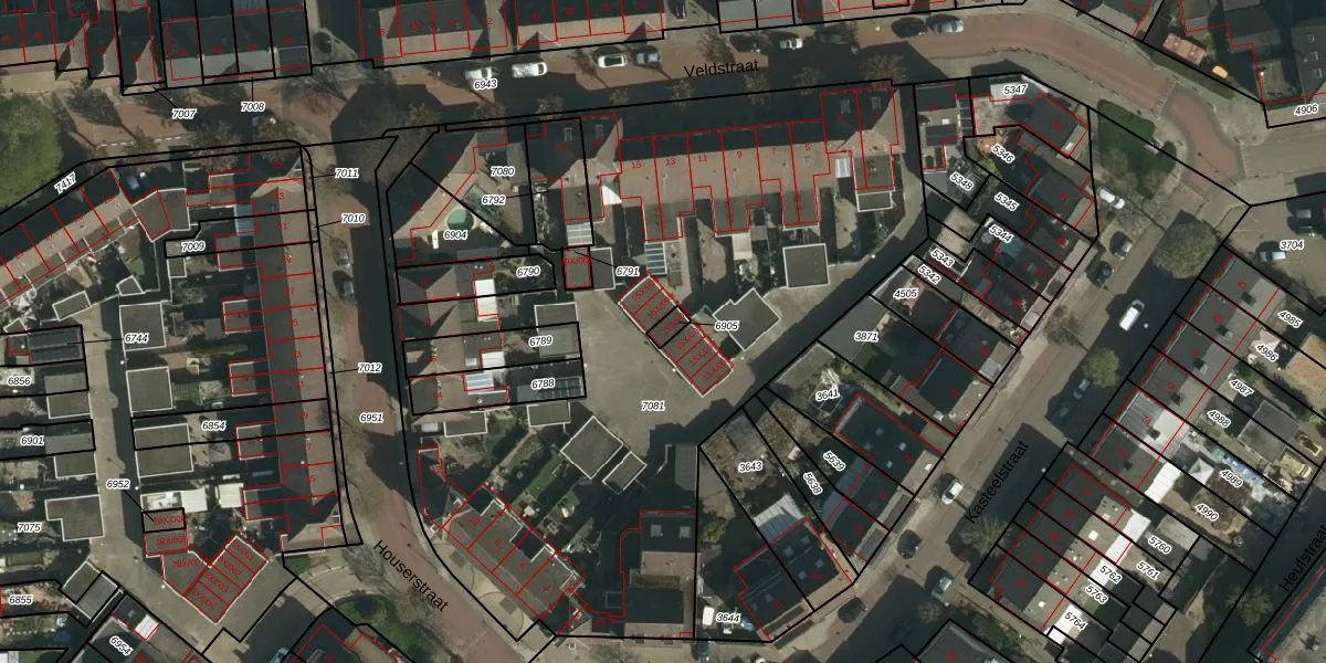 Gebruik de zoekbalk of klik op een perceel voor informatie over de adressen binnen dit perceel.