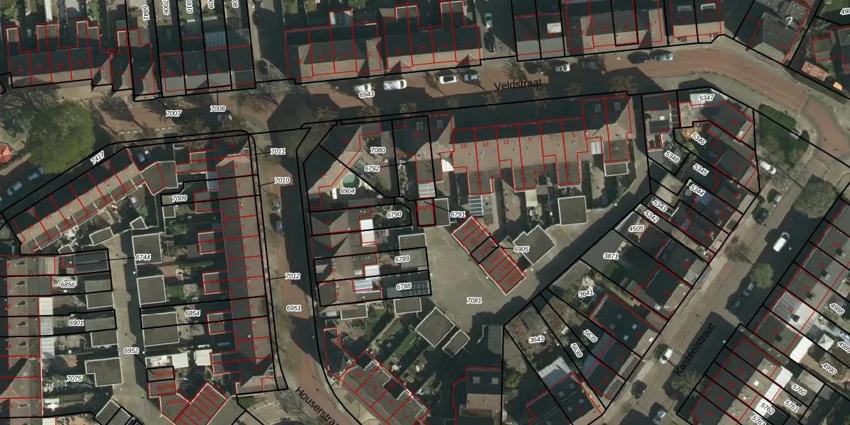 Het perceel waarop Veldstraat 19-X-001 staat heeft een oppervlakte van 26 m². Dit is een klein perceel. De perceeloppervlakte wordt geregistreerd door het Kadaster. Gedetailleerde informatie over de maten van dit perceel kunt u vinden in het rapport Kadastrale kaart met maatvoering van Veldstraat 19-X-001.
