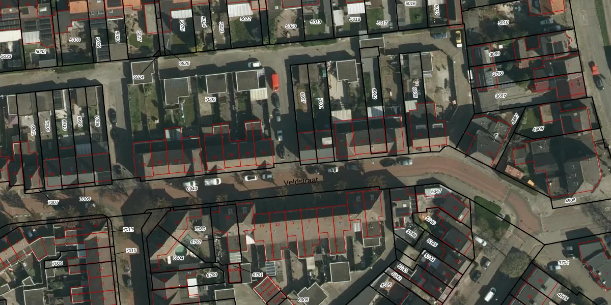 Gebruik de zoekbalk of klik op een perceel voor informatie over de adressen binnen dit perceel.