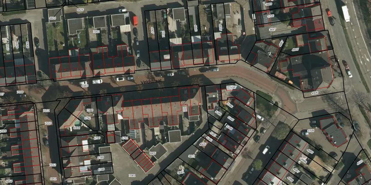 Het perceel waarop Veldstraat 3 staat heeft een oppervlakte van 3690 m². Dit is een zeer groot perceel. De perceeloppervlakte wordt geregistreerd door het Kadaster. Gedetailleerde informatie over de maten van dit perceel kunt u vinden in het rapport Kadastrale kaart met maatvoering van Veldstraat 3.