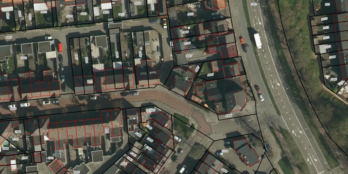 Het perceel waarop Veldstraat 4 staat heeft een oppervlakte van 247 m². Dit is een middelgroot perceel. De perceeloppervlakte wordt geregistreerd door het Kadaster. Gedetailleerde informatie over de maten van dit perceel kunt u vinden in het rapport Kadastrale kaart met maatvoering van Veldstraat 4.