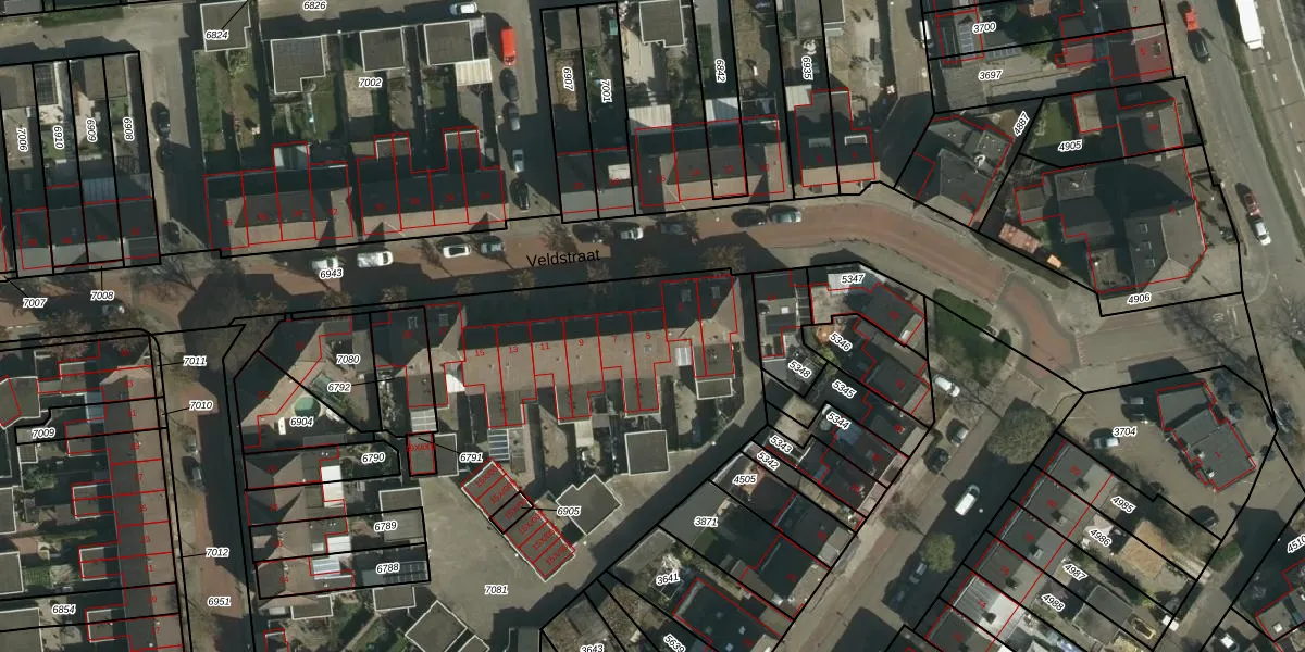 Het perceel waarop Veldstraat 5 staat heeft een oppervlakte van 3690 m². Dit is een zeer groot perceel. De perceeloppervlakte wordt geregistreerd door het Kadaster. Gedetailleerde informatie over de maten van dit perceel kunt u vinden in het rapport Kadastrale kaart met maatvoering van Veldstraat 5.