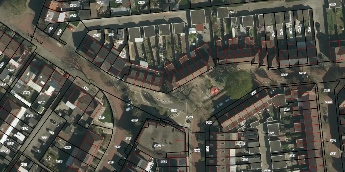 Het perceel waarop Veldstraat 74 staat heeft een oppervlakte van 7358 m². Dit is een zeer groot perceel. De perceeloppervlakte wordt geregistreerd door het Kadaster. Gedetailleerde informatie over de maten van dit perceel kunt u vinden in het rapport Kadastrale kaart met maatvoering van Veldstraat 74.