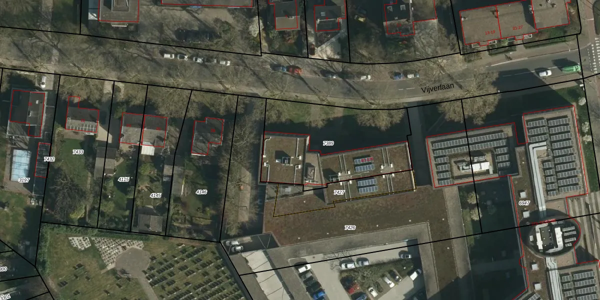 Het perceel waarop Vijverlaan 102 staat heeft een oppervlakte van 1215 m². Dit is een zeer groot perceel. De perceeloppervlakte wordt geregistreerd door het Kadaster. Gedetailleerde informatie over de maten van dit perceel kunt u vinden in het rapport Kadastrale kaart met maatvoering van Vijverlaan 102.