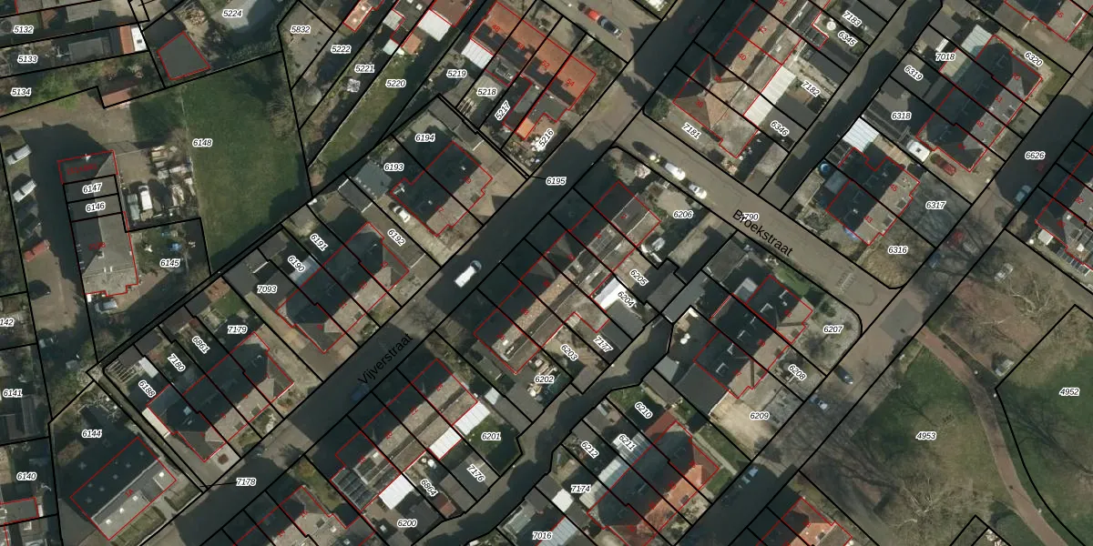 Het perceel waarop Vijverstraat 30 staat heeft een oppervlakte van 172 m². Dit is een middelgroot perceel. De perceeloppervlakte wordt geregistreerd door het Kadaster. Gedetailleerde informatie over de maten van dit perceel kunt u vinden in het rapport Kadastrale kaart met maatvoering van Vijverstraat 30.