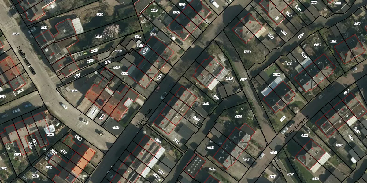 Gebruik de zoekbalk of klik op een perceel voor informatie over de adressen binnen dit perceel.
