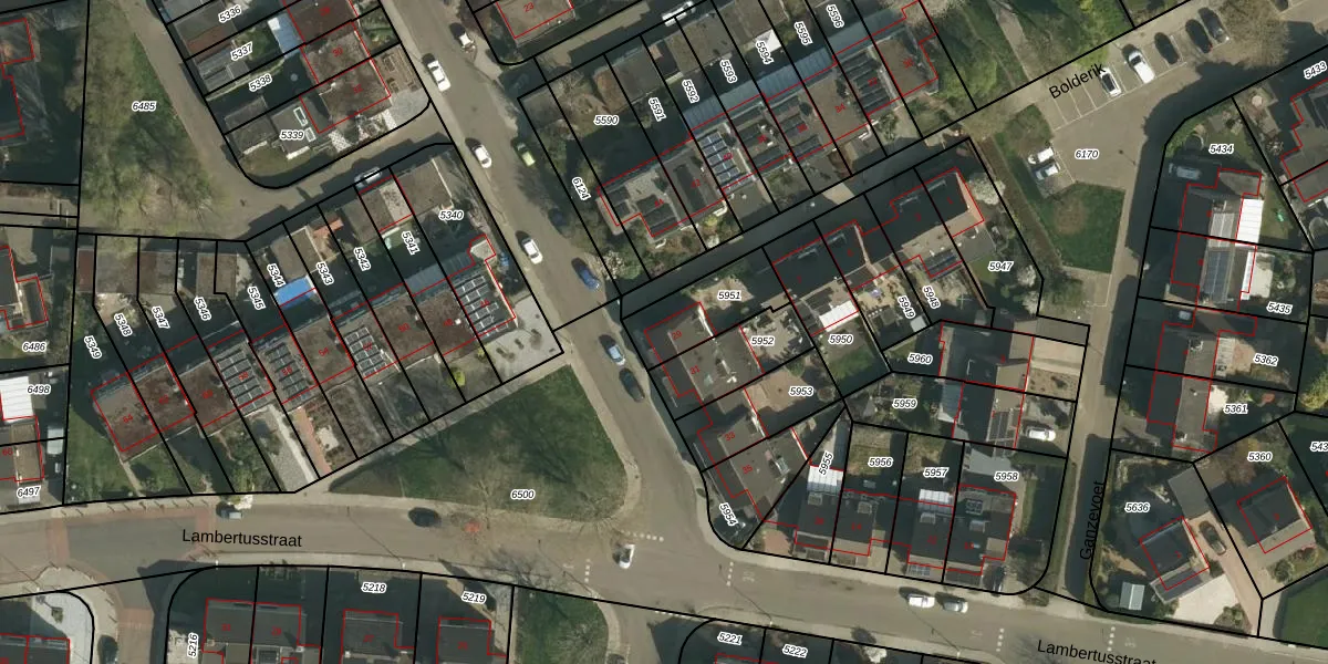 Gebruik de zoekbalk of klik op een perceel voor informatie over de adressen binnen dit perceel.