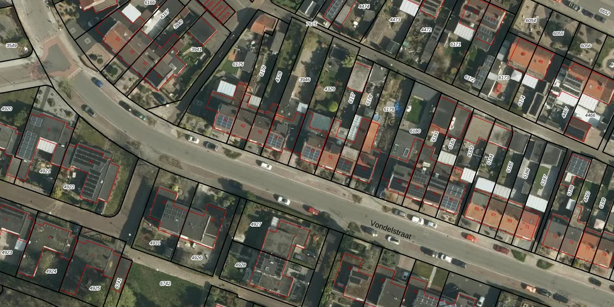 Het perceel waarop Vondelstraat 49 staat heeft een oppervlakte van 410 m². Dit is een groot perceel. De perceeloppervlakte wordt geregistreerd door het Kadaster. Gedetailleerde informatie over de maten van dit perceel kunt u vinden in het rapport Kadastrale kaart met maatvoering van Vondelstraat 49.