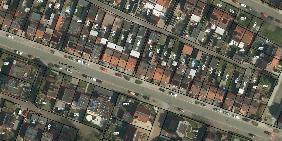 Het perceel waarop Vondelstraat 73 staat heeft een oppervlakte van 250 m². Dit is een middelgroot perceel. De perceeloppervlakte wordt geregistreerd door het Kadaster. Gedetailleerde informatie over de maten van dit perceel kunt u vinden in het rapport Kadastrale kaart met maatvoering van Vondelstraat 73.