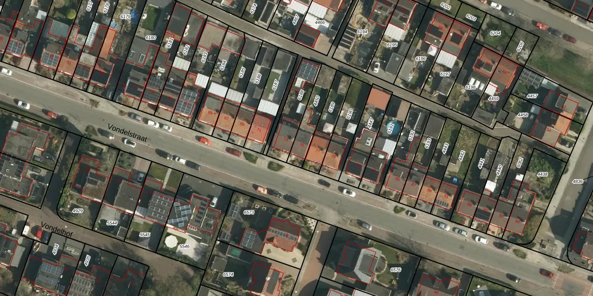 Het perceel waarop Vondelstraat 75 staat heeft een oppervlakte van 199 m². Dit is een middelgroot perceel. De perceeloppervlakte wordt geregistreerd door het Kadaster. Gedetailleerde informatie over de maten van dit perceel kunt u vinden in het rapport Kadastrale kaart met maatvoering van Vondelstraat 75.