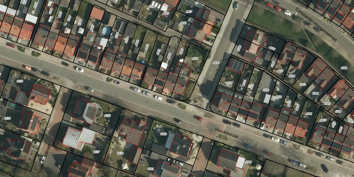 Gebruik de zoekbalk of klik op een perceel voor informatie over de adressen binnen dit perceel.