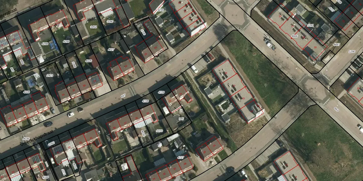 Het perceel waarop Vroedschapstraat 29 staat heeft een oppervlakte van 5634 m². Dit is een zeer groot perceel. De perceeloppervlakte wordt geregistreerd door het Kadaster. Gedetailleerde informatie over de maten van dit perceel kunt u vinden in het rapport Kadastrale kaart met maatvoering van Vroedschapstraat 29.