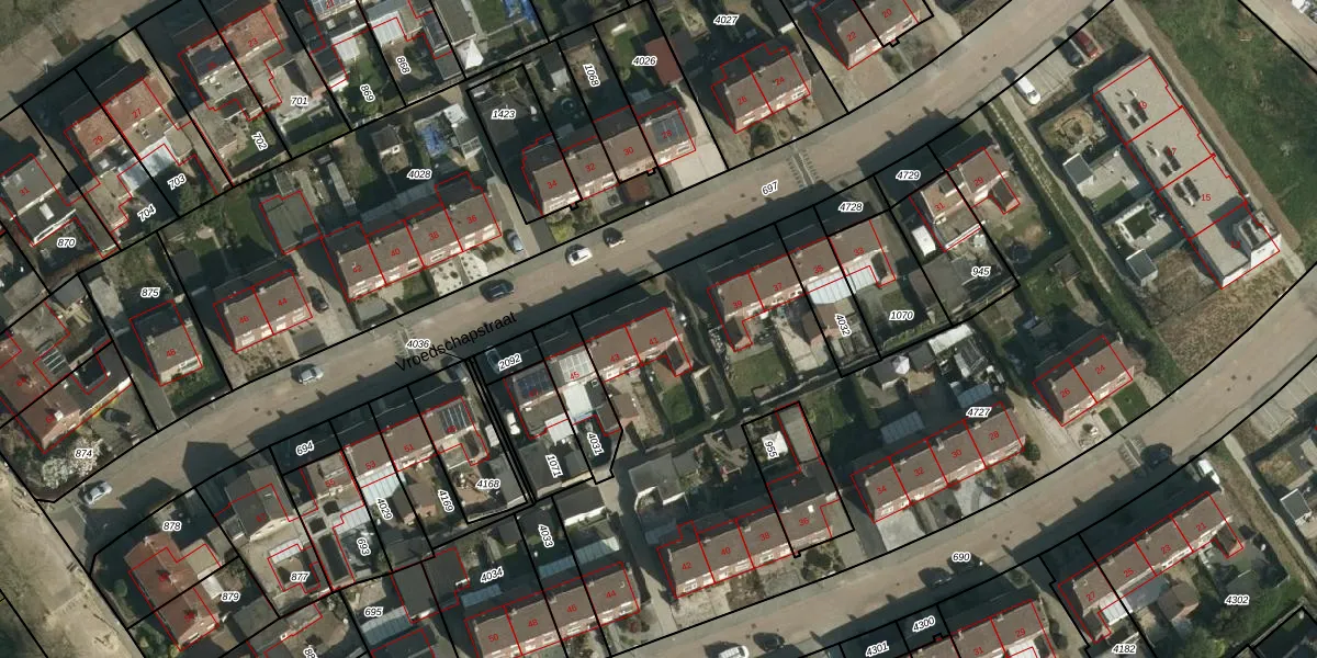 Het perceel waarop Vroedschapstraat 41 staat heeft een oppervlakte van 5634 m². Dit is een zeer groot perceel. De perceeloppervlakte wordt geregistreerd door het Kadaster. Gedetailleerde informatie over de maten van dit perceel kunt u vinden in het rapport Kadastrale kaart met maatvoering van Vroedschapstraat 41.