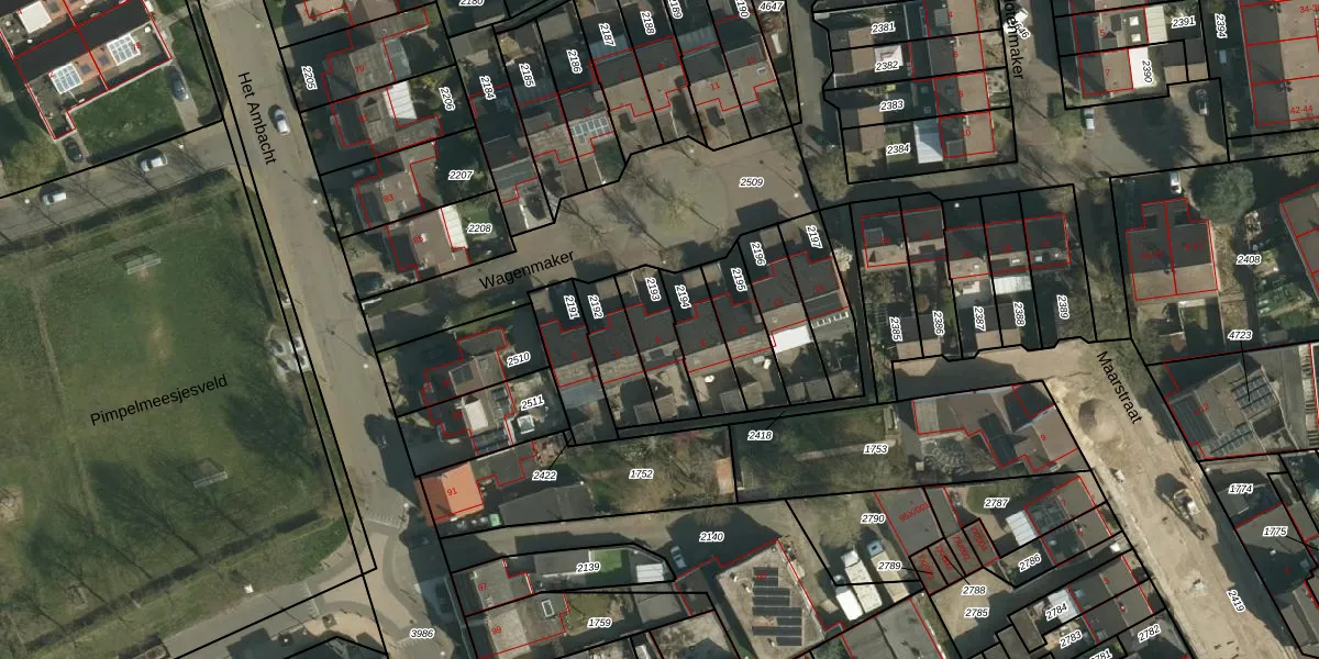 Gebruik de zoekbalk of klik op een perceel voor informatie over de adressen binnen dit perceel.