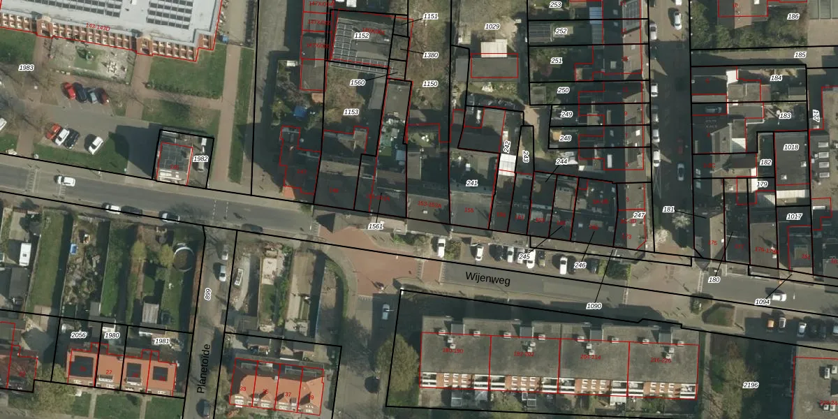 Het perceel waarop Wijenweg 153 staat heeft een oppervlakte van 585 m². Dit is een groot perceel. De perceeloppervlakte wordt geregistreerd door het Kadaster. Gedetailleerde informatie over de maten van dit perceel kunt u vinden in het rapport Kadastrale kaart met maatvoering van Wijenweg 153.