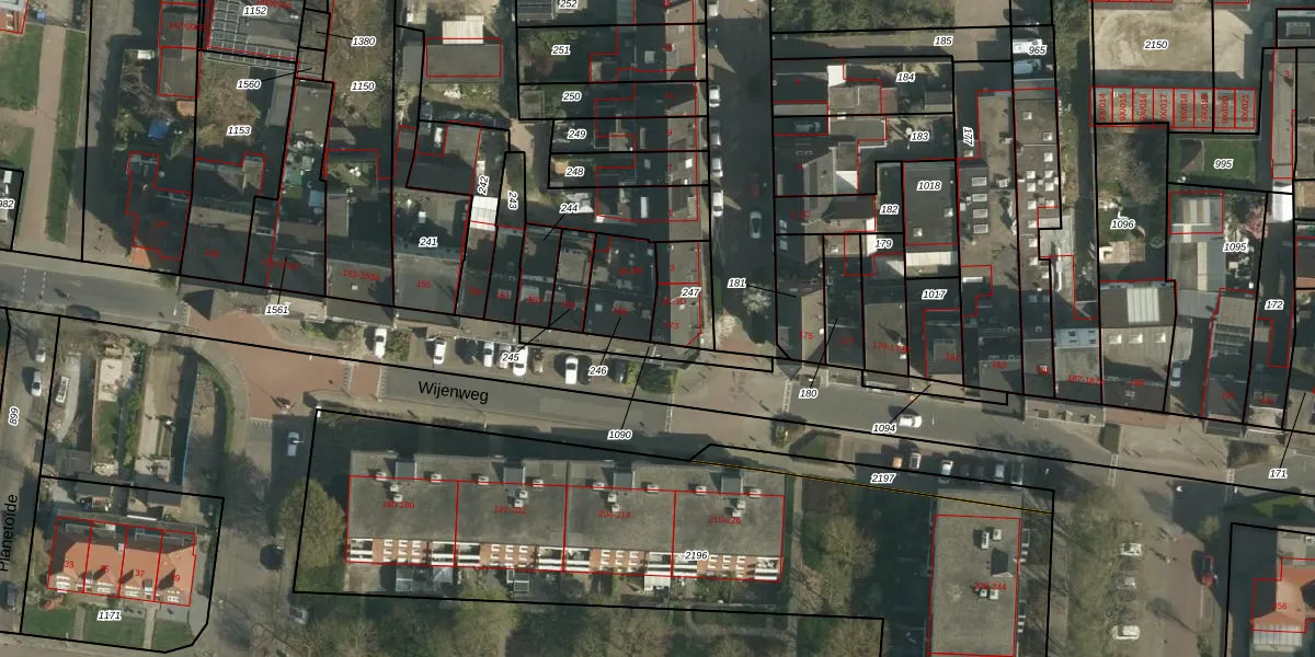 Het perceel waarop Wijenweg 173 staat heeft een oppervlakte van 145 m². Dit is een middelgroot perceel. De perceeloppervlakte wordt geregistreerd door het Kadaster. Gedetailleerde informatie over de maten van dit perceel kunt u vinden in het rapport Kadastrale kaart met maatvoering van Wijenweg 173.