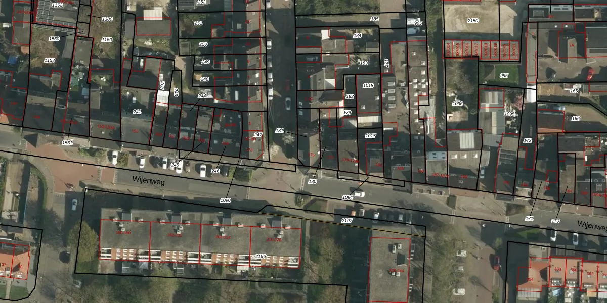 Het perceel waarop Wijenweg 175 staat heeft een oppervlakte van 143 m². Dit is een middelgroot perceel. De perceeloppervlakte wordt geregistreerd door het Kadaster. Gedetailleerde informatie over de maten van dit perceel kunt u vinden in het rapport Kadastrale kaart met maatvoering van Wijenweg 175.