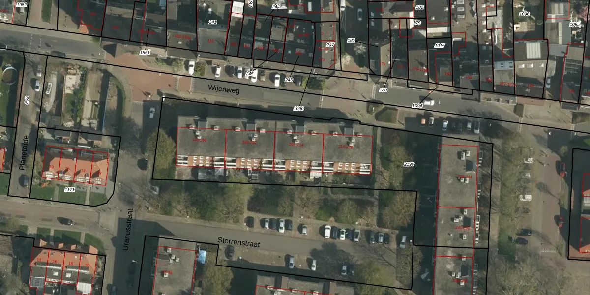 Het perceel waarop Wijenweg 208 staat heeft een oppervlakte van 3090 m². Dit is een zeer groot perceel. De perceeloppervlakte wordt geregistreerd door het Kadaster. Gedetailleerde informatie over de maten van dit perceel kunt u vinden in het rapport Kadastrale kaart met maatvoering van Wijenweg 208.