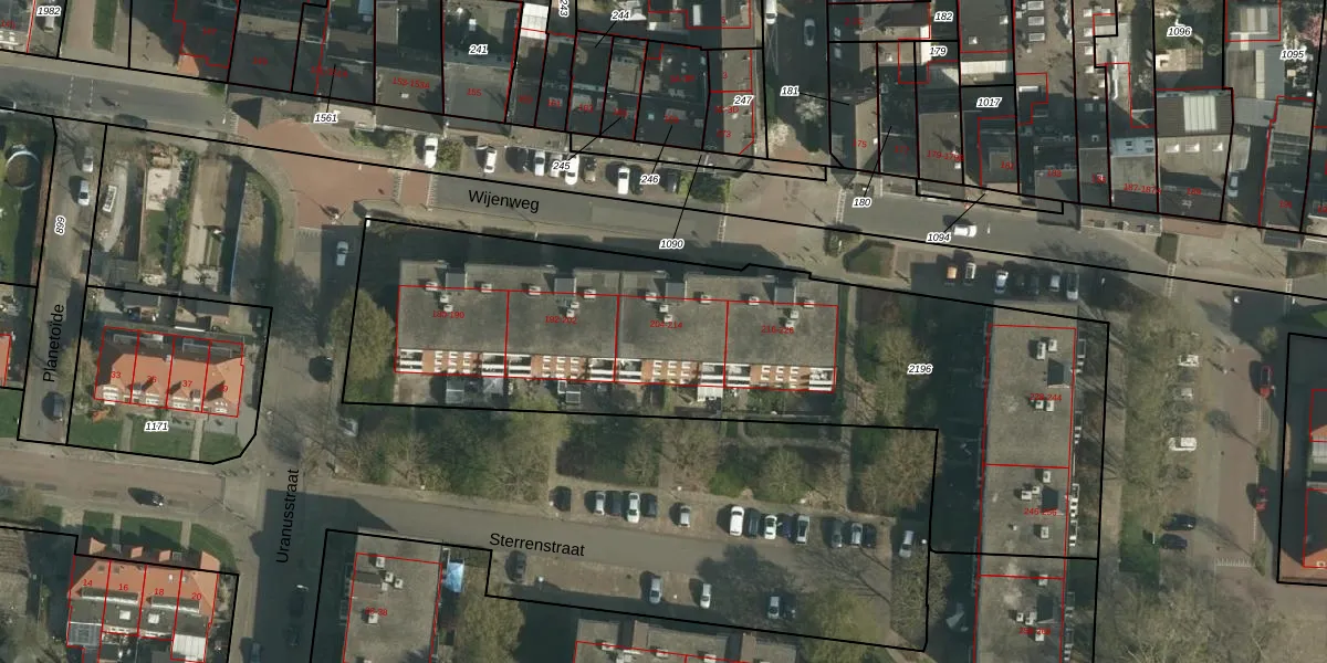 Het perceel waarop Wijenweg 212 staat heeft een oppervlakte van 3090 m². Dit is een zeer groot perceel. De perceeloppervlakte wordt geregistreerd door het Kadaster. Gedetailleerde informatie over de maten van dit perceel kunt u vinden in het rapport Kadastrale kaart met maatvoering van Wijenweg 212.