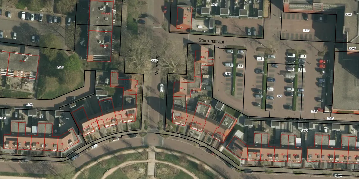 Het perceel waarop Wijenweg 350 staat heeft een oppervlakte van 4436 m². Dit is een zeer groot perceel. De perceeloppervlakte wordt geregistreerd door het Kadaster. Gedetailleerde informatie over de maten van dit perceel kunt u vinden in het rapport Kadastrale kaart met maatvoering van Wijenweg 350.