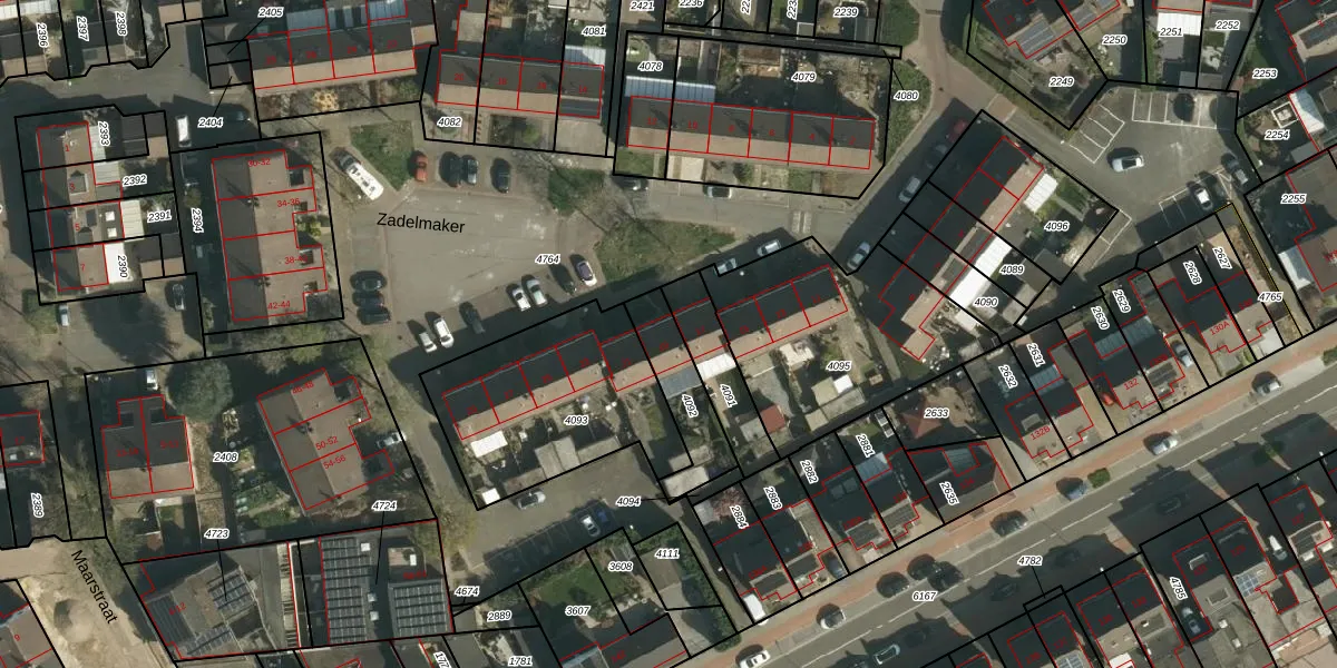 Het perceel waarop Zadelmaker 19 staat heeft een oppervlakte van 198 m². Dit is een middelgroot perceel. De perceeloppervlakte wordt geregistreerd door het Kadaster. Gedetailleerde informatie over de maten van dit perceel kunt u vinden in het rapport Kadastrale kaart met maatvoering van Zadelmaker 19.