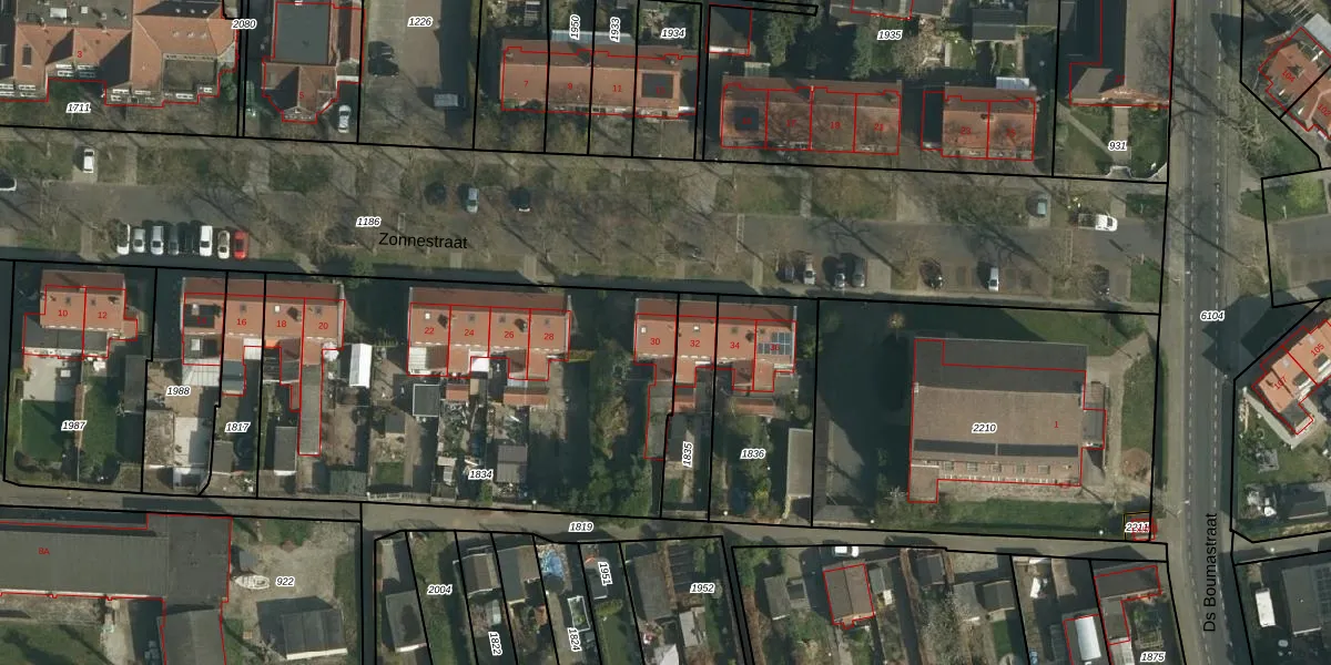 Het perceel waarop Zonnestraat 30 staat heeft een oppervlakte van 2090 m². Dit is een zeer groot perceel. De perceeloppervlakte wordt geregistreerd door het Kadaster. Gedetailleerde informatie over de maten van dit perceel kunt u vinden in het rapport Kadastrale kaart met maatvoering van Zonnestraat 30.