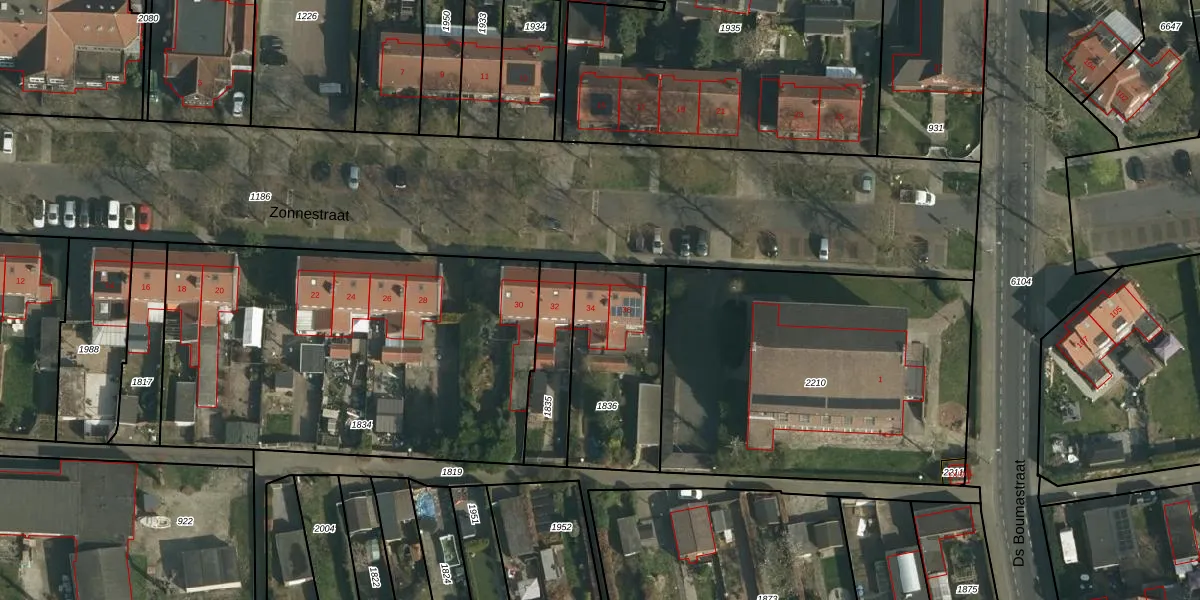Zonnestraat 34 is gelegen op kadastraal perceel BSM02G1836. Deze kadastrale aanduiding is uniek en wordt gebruikt door het Kadaster om eigendomsrechten en andere zakelijke rechten vast te leggen. Het perceel maakt onderdeel uit van de kadastrale gemeente Brunssum.