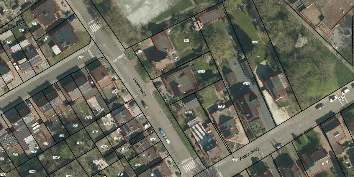 Het perceel waarop Havenweg 101 staat heeft een oppervlakte van 608 m². Dit is een groot perceel. De perceeloppervlakte wordt geregistreerd door het Kadaster. Gedetailleerde informatie over de maten van dit perceel kunt u vinden in het rapport Kadastrale kaart met maatvoering van Havenweg 101.